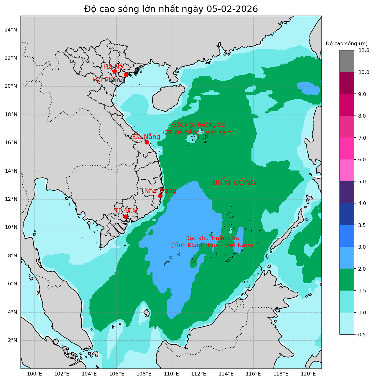 Gió đông bắc cấp 4. Sóng cao 1,0 - 2,0m; ngày mai tăng lên 2,0-4,0m.
