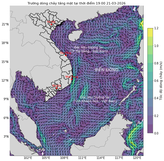 Gió đông nam cấp 3-4. Sóng cao 0,5 - 1,5m.