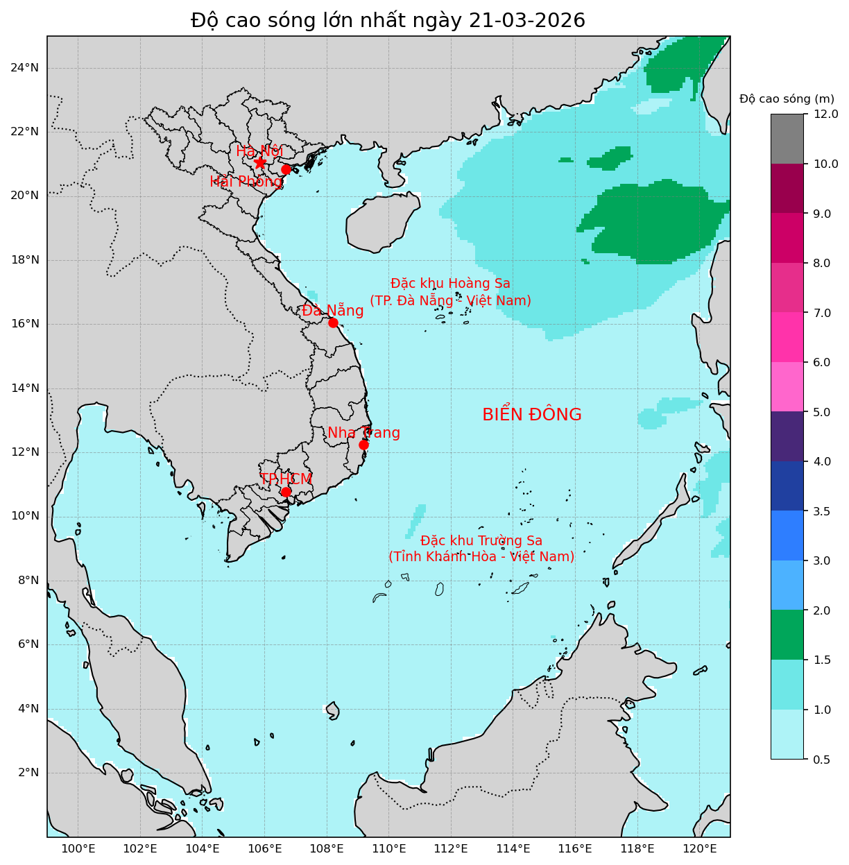 Gió đông cấp 3-4. Sóng cao 0,5 - 1,5m.