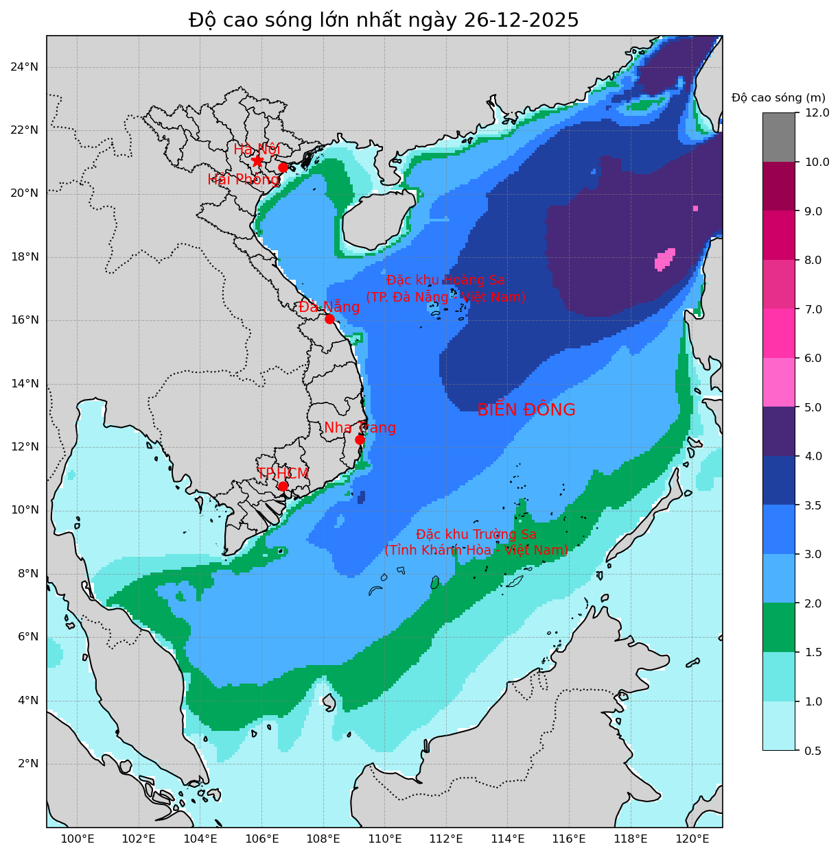 • Thời tiết biển - Ngày và đêm 26/12/2025