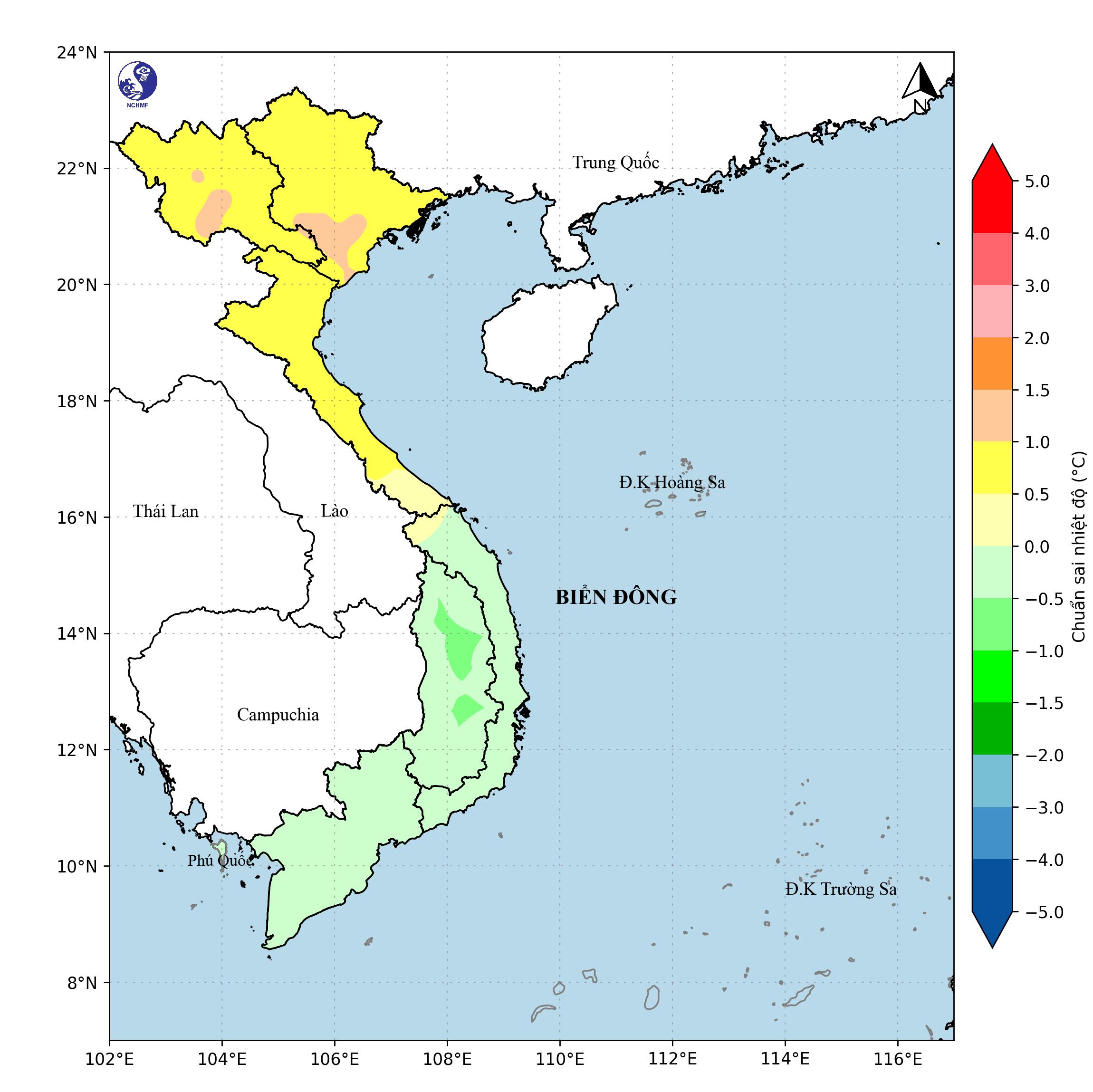 Nhiệt độ cao nhất : Phía Bắc 17-20 độ; phía Nam 20-23 độ.