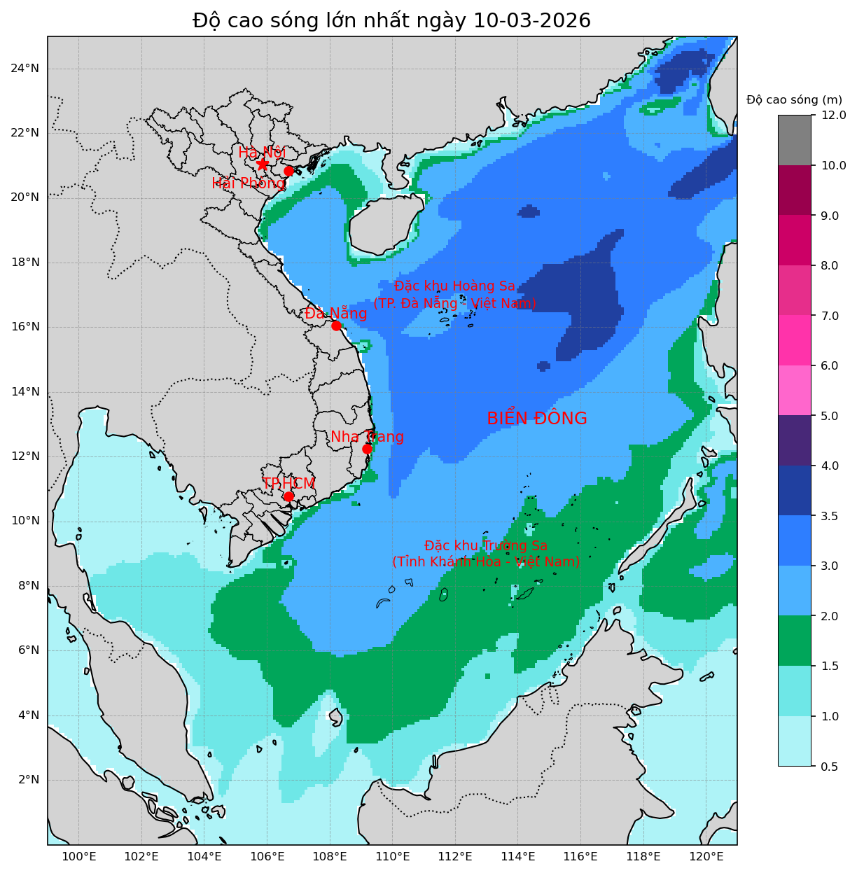 Phía Bắc gió mạnh dần cấp 6, giật cấp 7-8, biển động; riêng khu vực Khánh Hòa có lúc cấp 7, giật cấp 8-9, biển động mạnh. Sóng cao 3,0 - 5,0m.