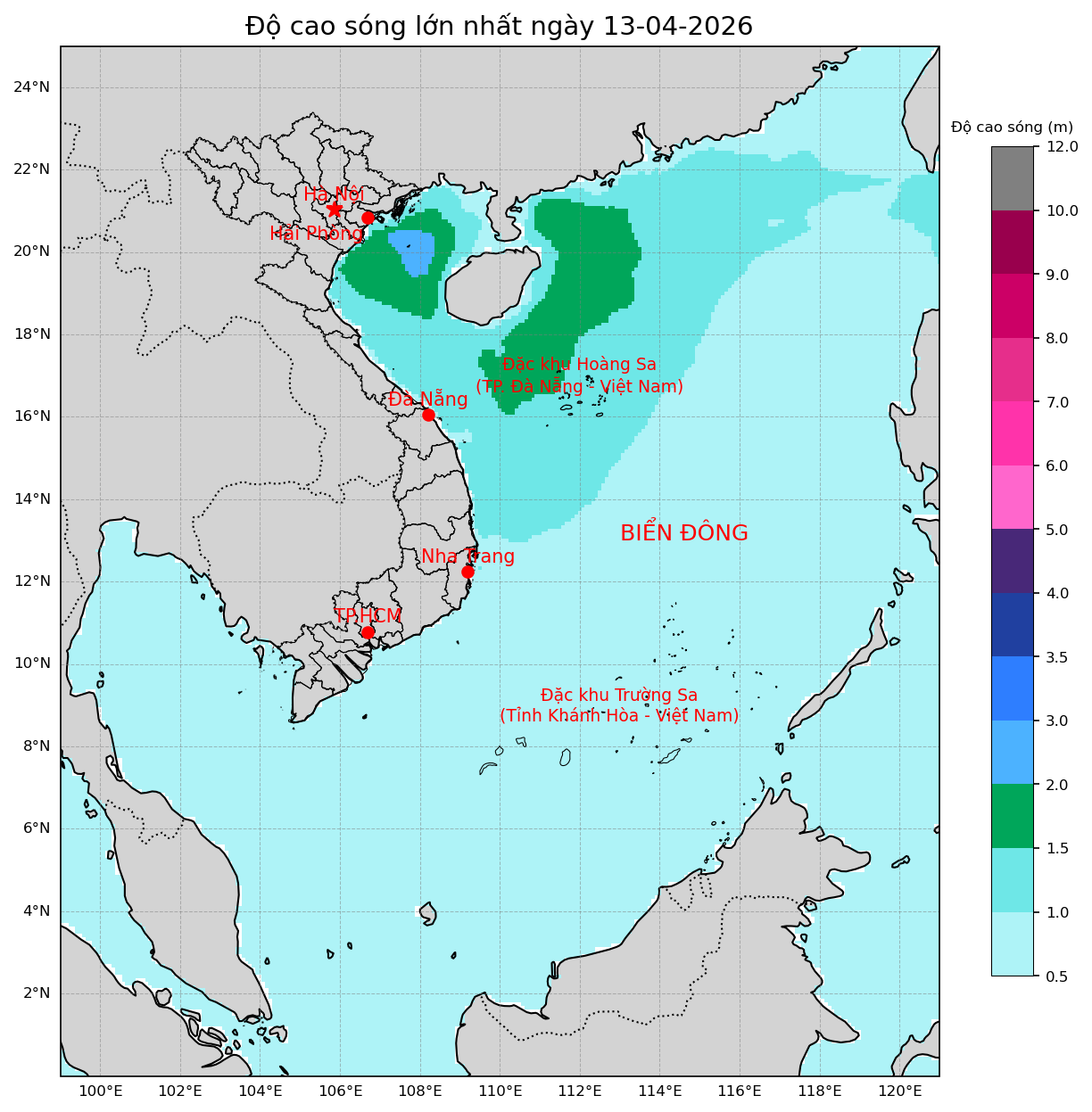 Dự báo độ cao và hướng sóng cho toàn bộ khu vực Biển Đông và ven bờ Việt Nam với thời hạn 10 ngày