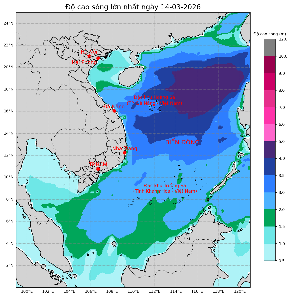 Gió đông bắc cấp 5, riêng Khánh Hòa ngày cấp 6, giật cấp 7-8. Biển động. Sóng cao 2,0 - 3,0m.