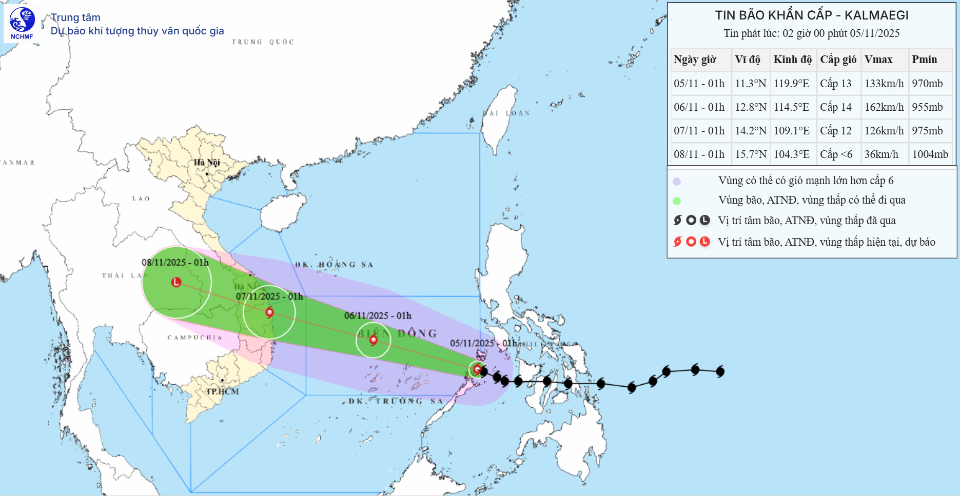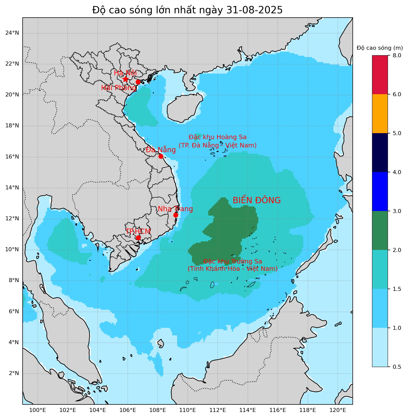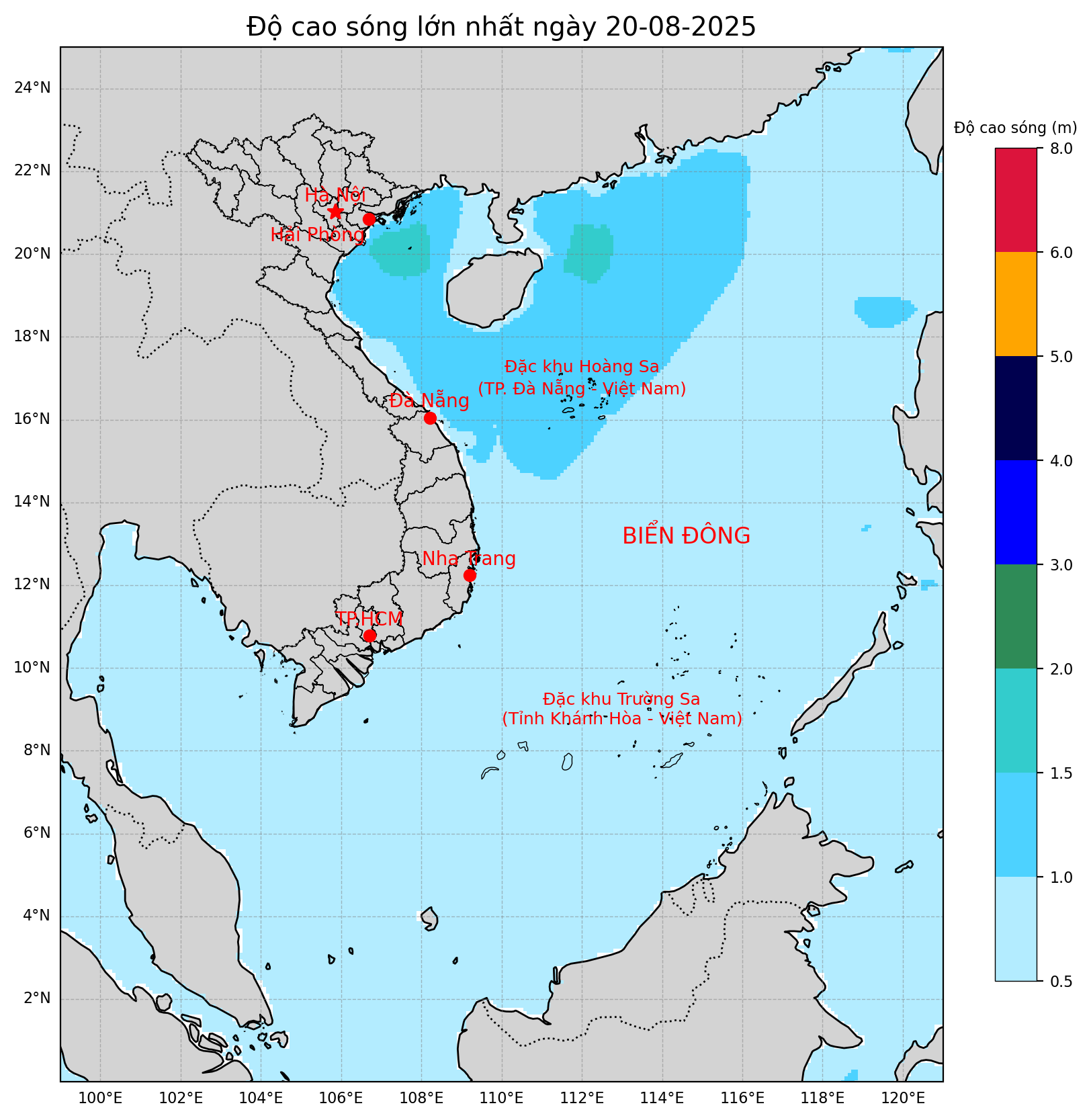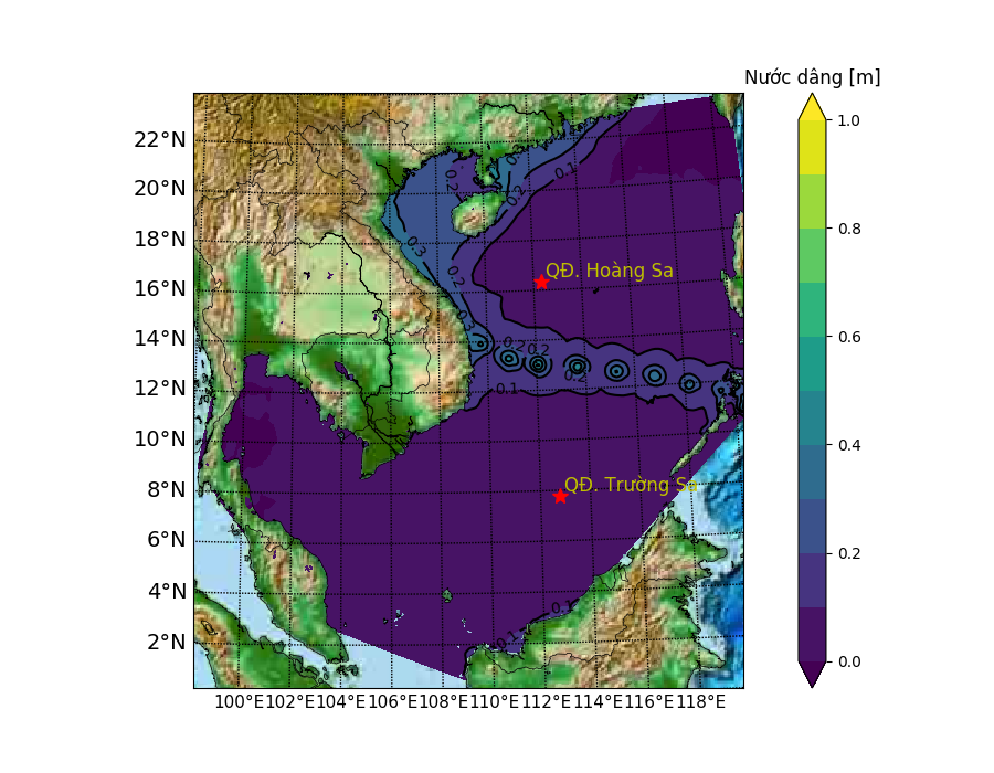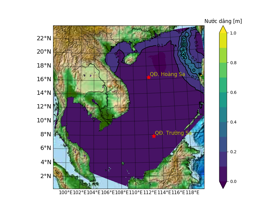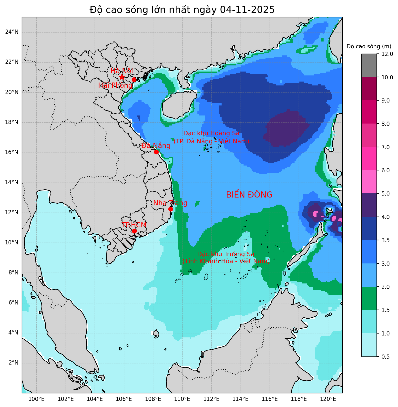 Gió đông bắc đến bắc cấp 5, có lúc cấp 6 giật cấp 7-8; riêng phía Đông gió mạnh cấp 6-7, sau tăng lên cấp 8-10, vùng gần tâm bão cấp 11-13, giật cấp 16, biển động dữ dội. 7,0 - 9,0m, vùng gần