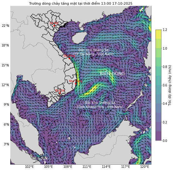 Khu vực Nam Quảng Trị - Quảng Ngãi, Nam Biển Đông: vận tốc 0,4 - 1,1 m/s.
